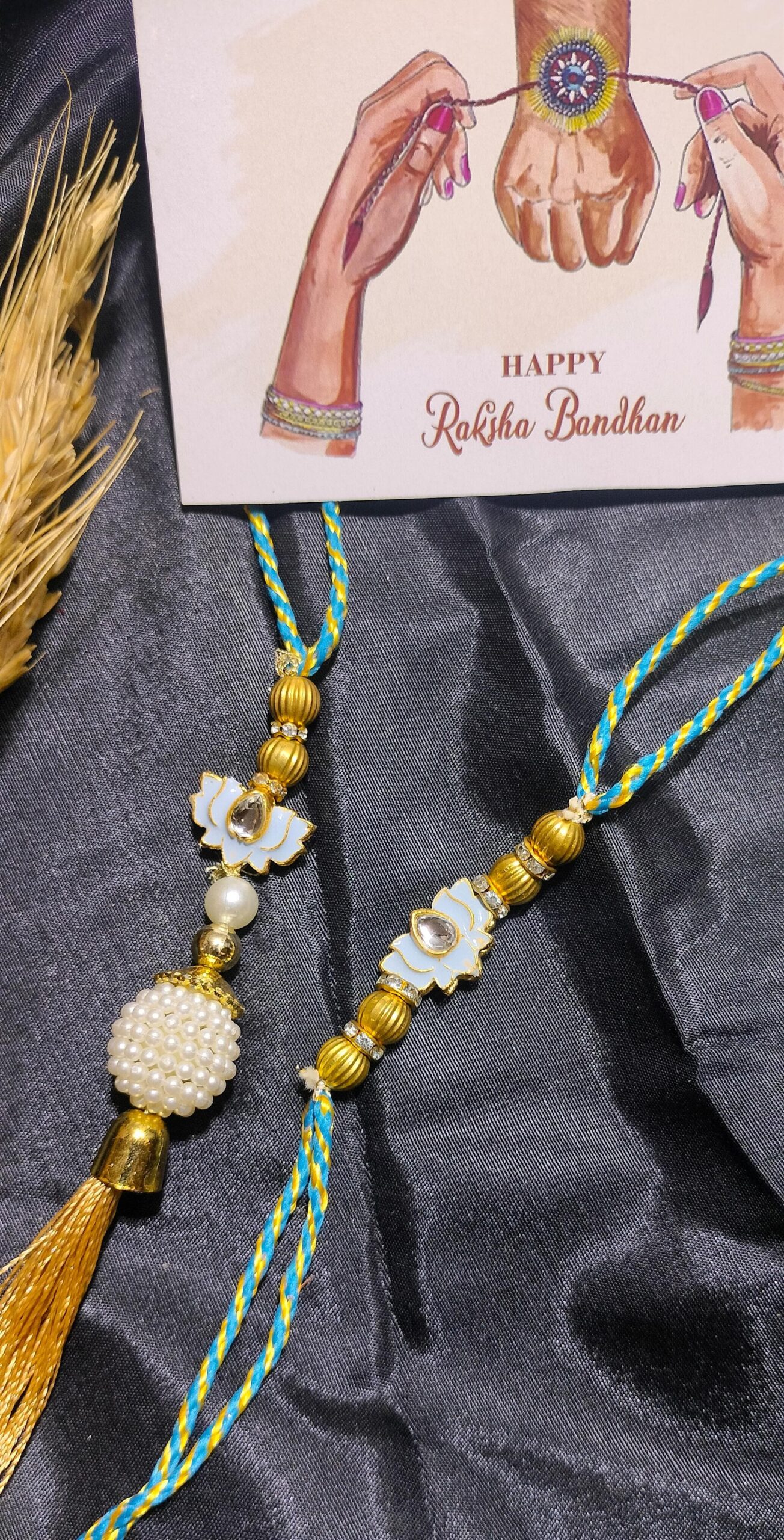 Kundan Flower Rakhi and Lumba